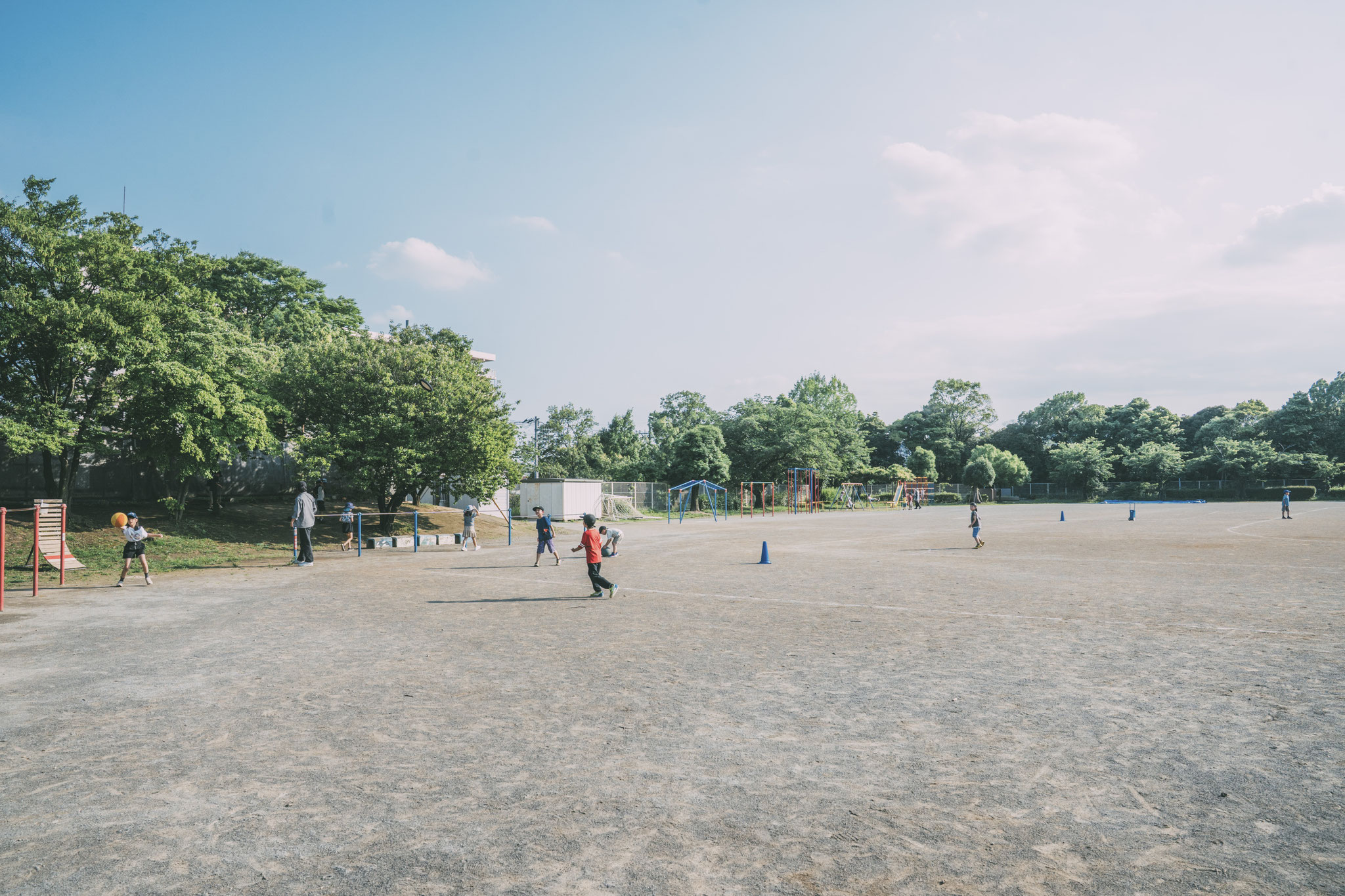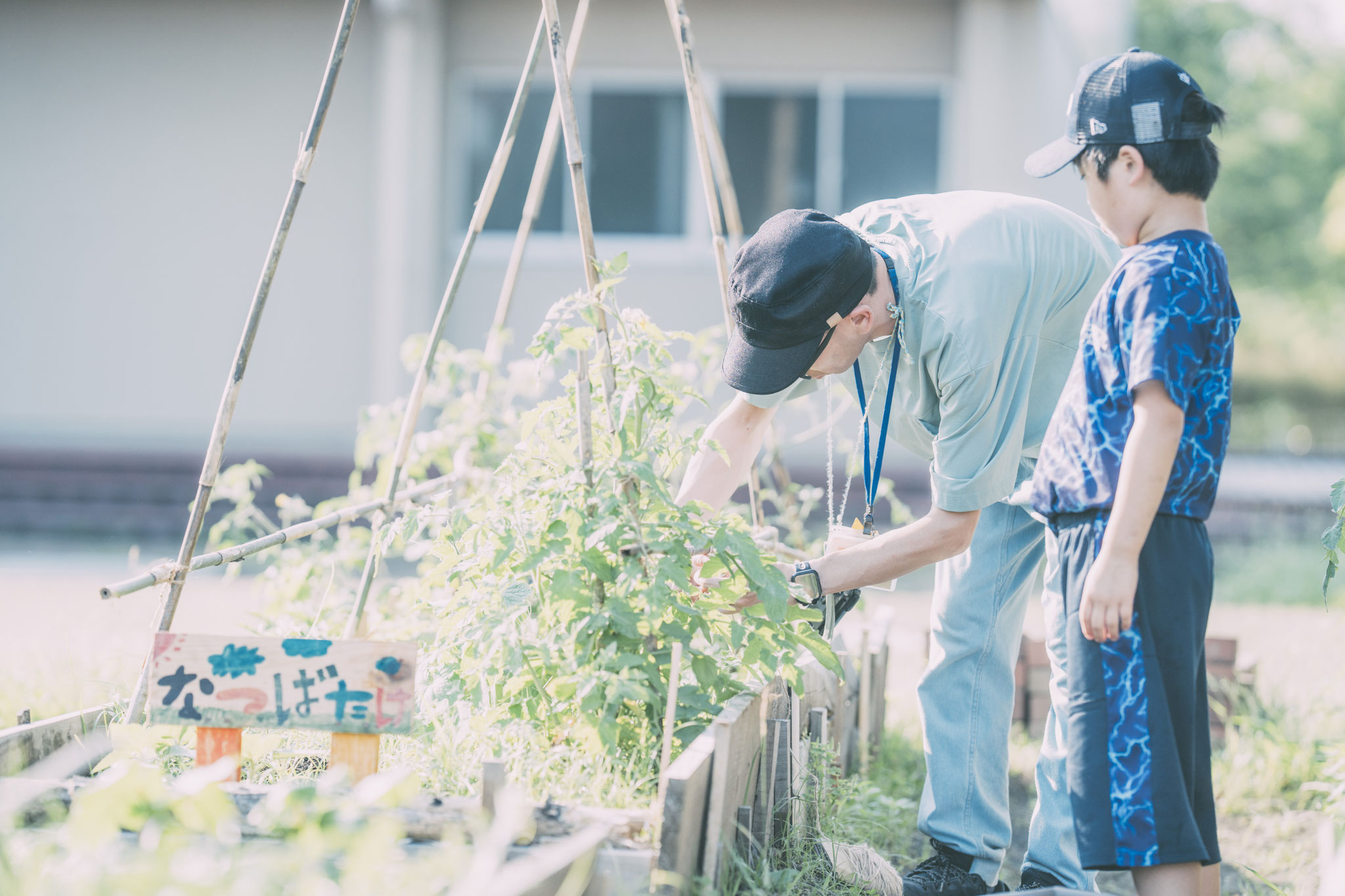 定員120名の大規模学童クラブ。活動の中で異年齢の子どもたちが自然に関わり社会性を育んでいきます。室内には和室の読書コーナー、創造力を育む工作スペースなど、子どもたち一人ひとりの「やりたい!」に応える多彩な環境が整っています。 学校の畑を活用した「スクールヤード活動」では季節に合わせた野菜づくりに挑戦。土に触れ、育てた野菜を収穫し、時には調理体験も。命の大切さや食への関心を育てます。周囲には自然豊かな公園があり春には美しい桜並木が見られます。